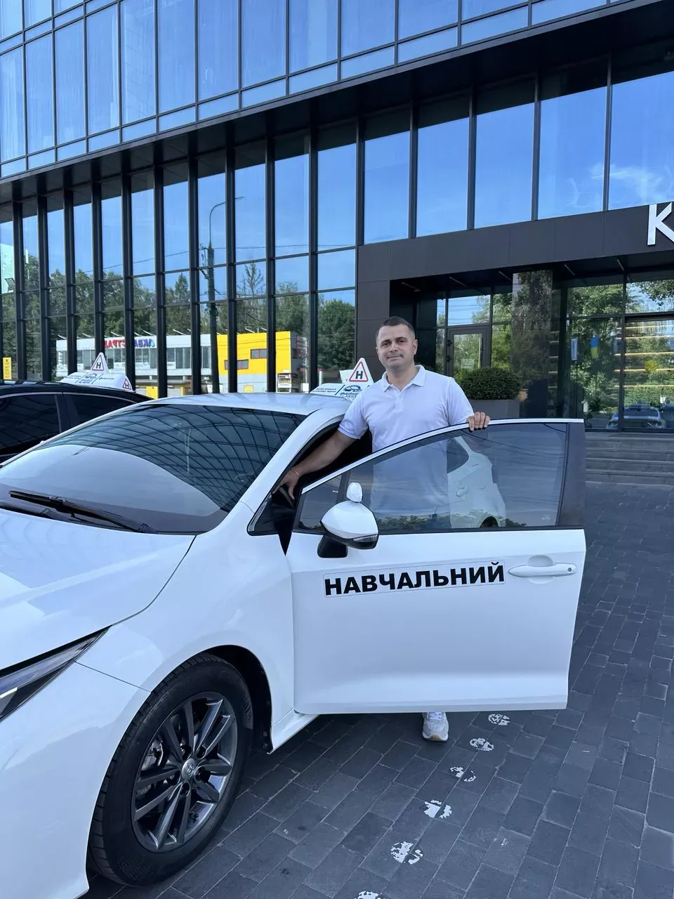 Маю педагогічну освіту у галузі транспорту, тому пояснюю матеріал поглиблено та доступно. Заняття проводжу на сучасному автомобілі Toyota Corolla 2020 року — такій самій, як на іспитах у сервісному центрі.
